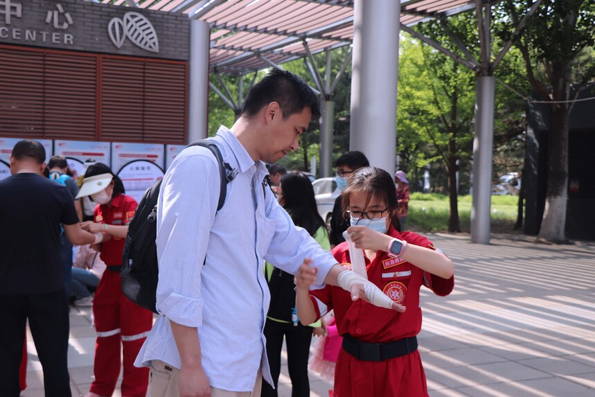 救在身边 | 红十字青少年体验营时间:2023-05-01 2023年4月30日-5月1日。军红救援队开展为期两天的红十字青少年体验营活动,共招募20余名营员参加。 本次红十字青少年体验营旨在培养青少年安全意识,了解危险的预防和规避,学习自救互救的技能、捍卫、拯救生命。倡导急救从娃娃抓起,通过组织志愿服务,传承红十字精神。 营员们通过一天半的时间,系统学习了红十字起源、常见意外伤害,止血包扎、灾害现场检伤分类、气道异物梗阻背部叩击、腹部冲击、心肺复苏+AED等自救互救技能。